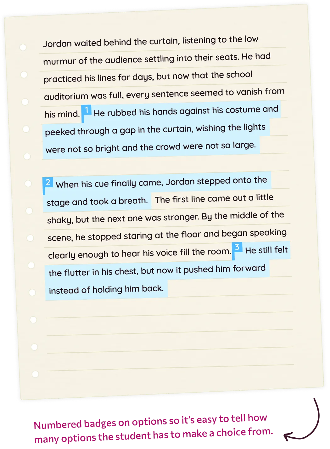 Hot Text is a common question type on English US state tests, and we needed to add support for it.