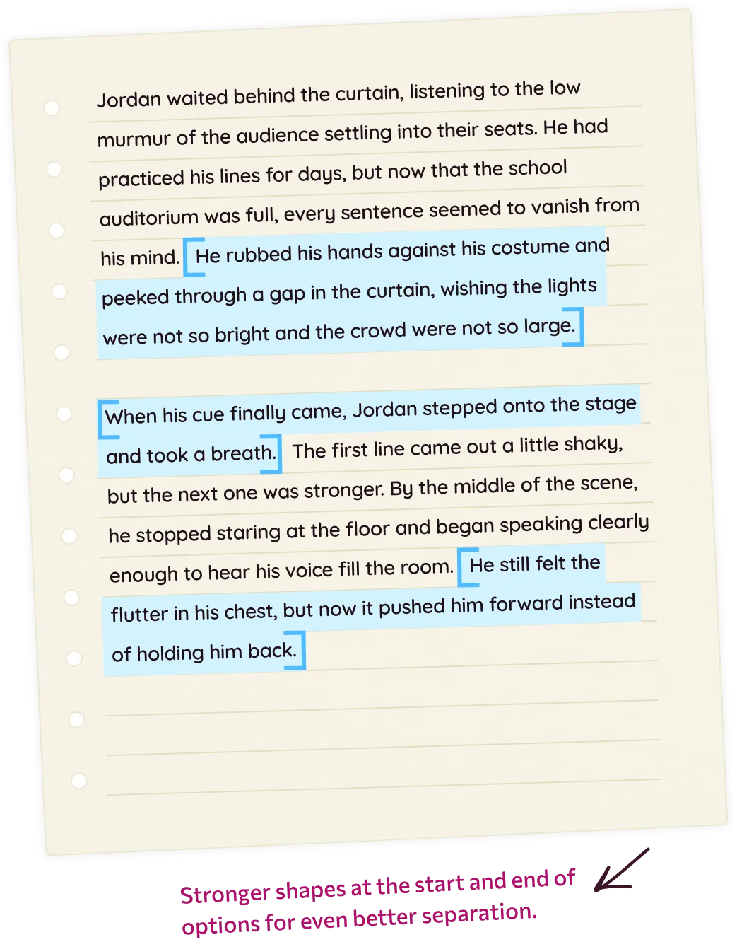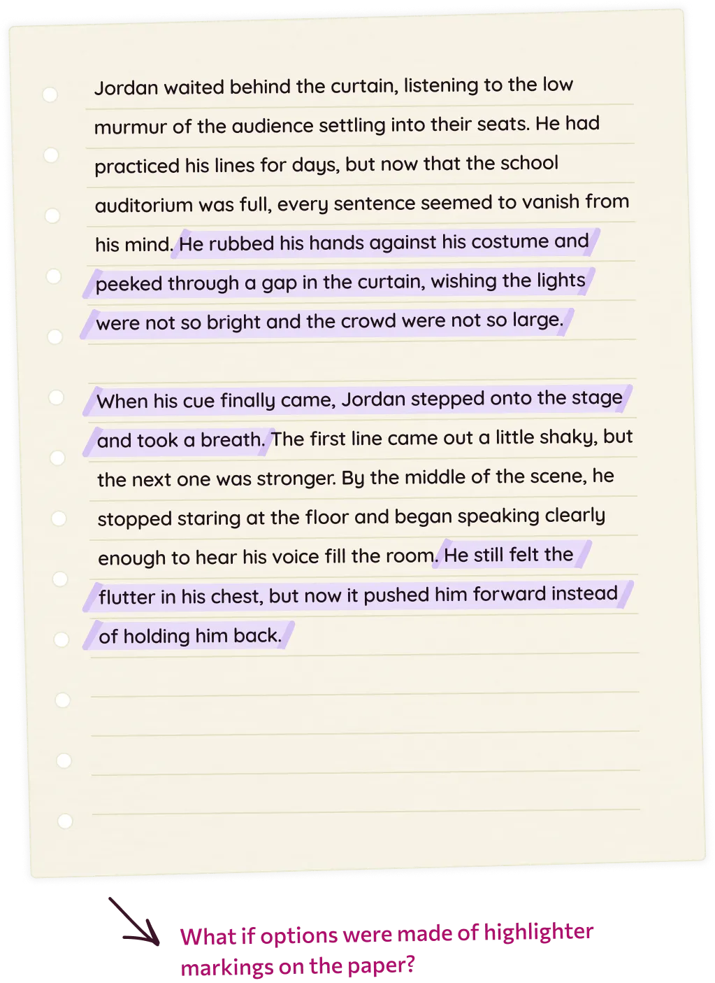I tinkered around with the highlight metaphor quite a bit and made the paper feel more tactile as you can see below.